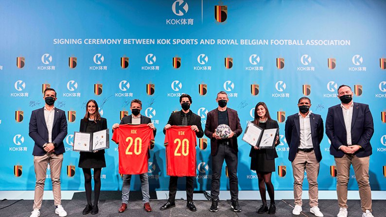 - 2021年3月22日,比利时国际足球队召开发布会并举行签约仪式,正式宣布KOK体育成为亚洲区独家合作伙伴,KOK体育全球市场总监兼发言人与比利时国家足球队市场总监Manu Leroy先生共同出席并签署协议。